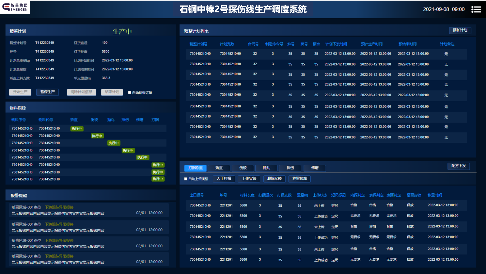 棒材精整區域轉運頻繁、繁重及人工作業較多,基于此構建智能精整全流程、集群化機器人作業產線,提升精整工藝質量和效率,建立網絡化可追溯的工藝、作業,實現全流程物料信息跟蹤。
